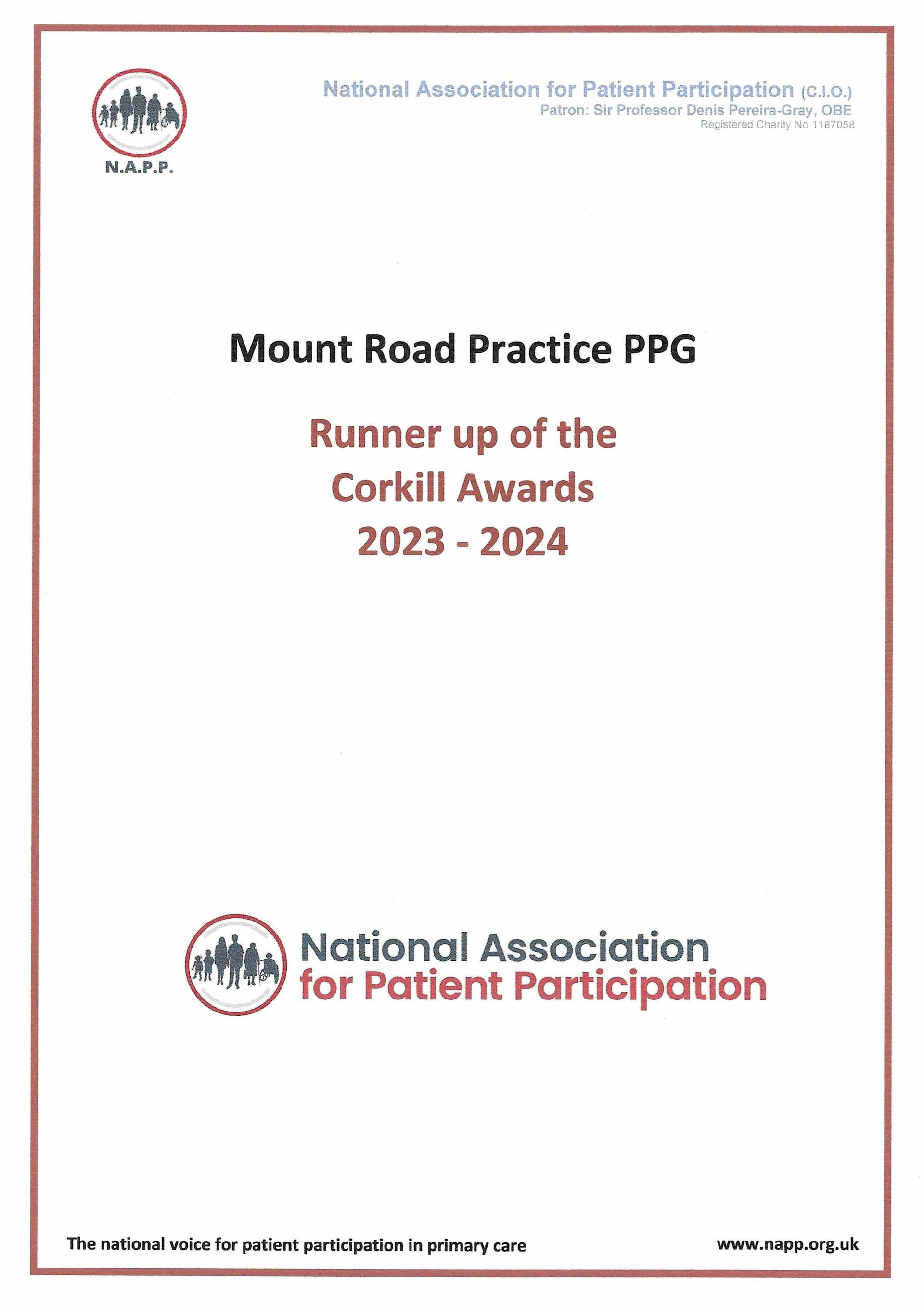 This Award was established by the N.A.P.P. Board in 2012 in recognition of a former Chairman, Joe Corkill, and his contribution to the promotion of patient participation for over twenty years.