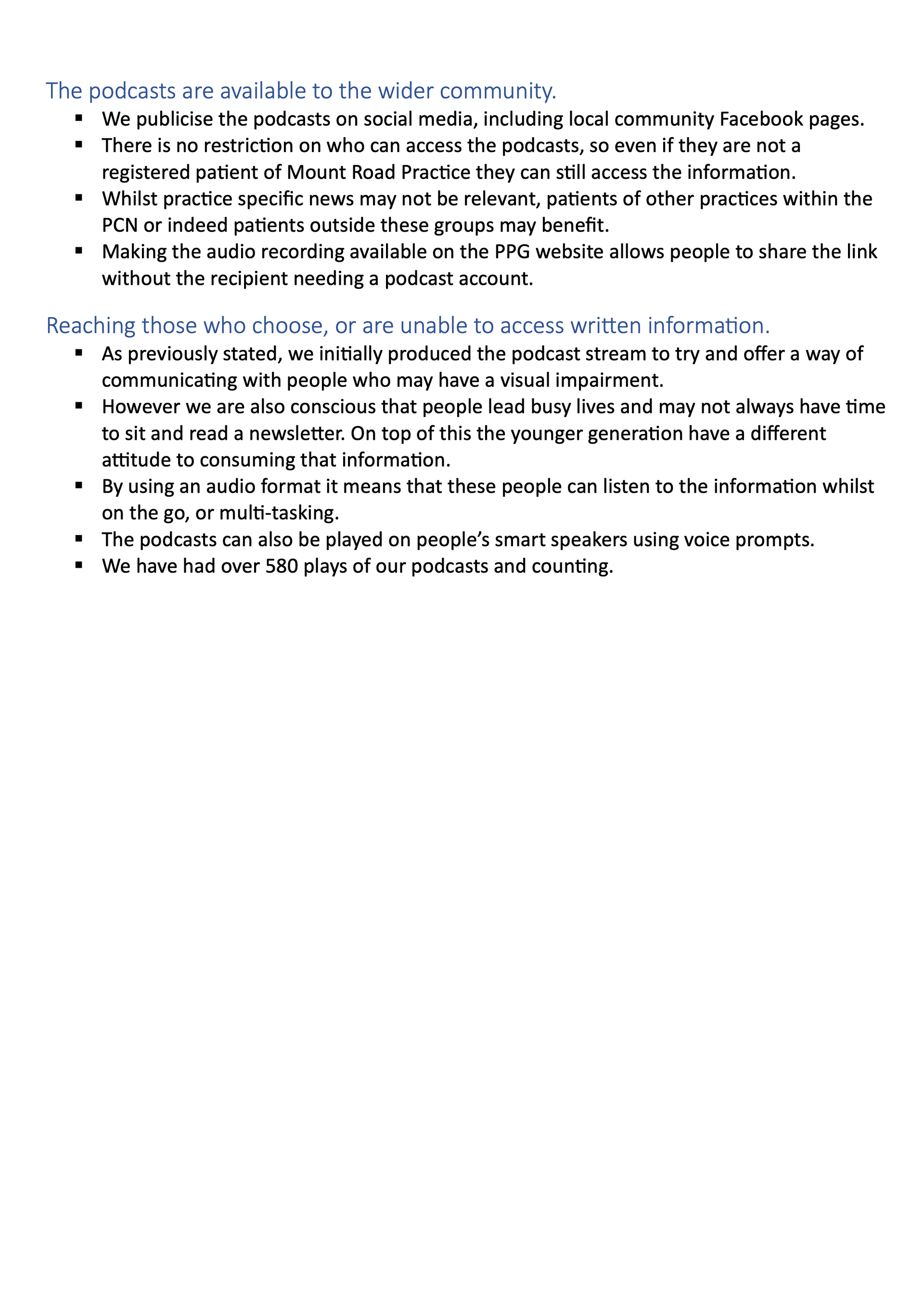 - Entries are particularly encouraged where the PPG has managed to succeed in wider community engagement under challenging circumstances and where the PPG is striving to engage with those sections of the population that are ‘harder to reach’, seldom heard, isolated or lonely.